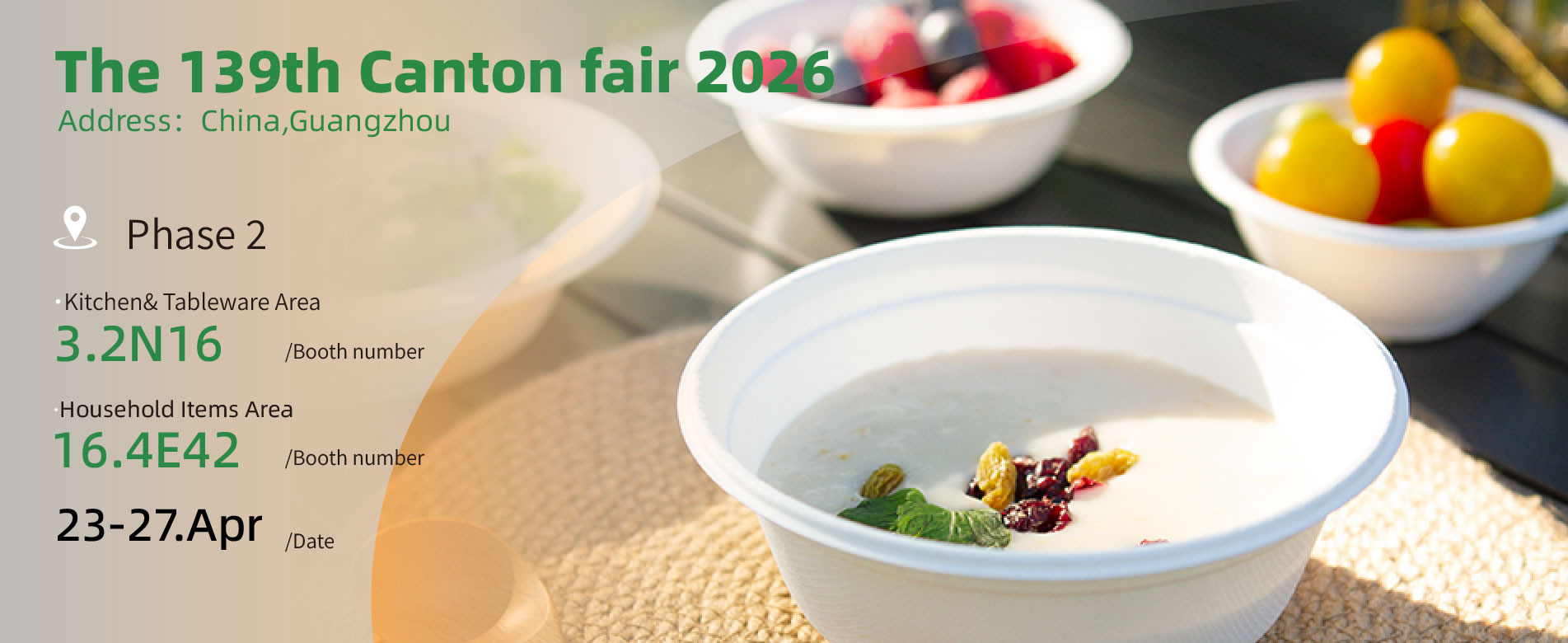 We are proud to announce our participation in the 139th Canton Fair 2026, one of the world’s most influential trade events. Exhibition:The 139th Canton Fair 2026 Location:China,Guangzhou Date:Phase 2,23-27 Apr 2026 Booth No.:-Kitchen&Tableware Area:3.2N16 &...