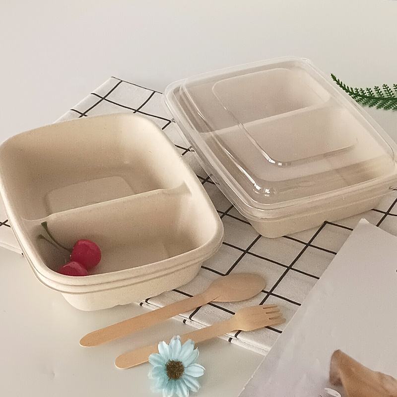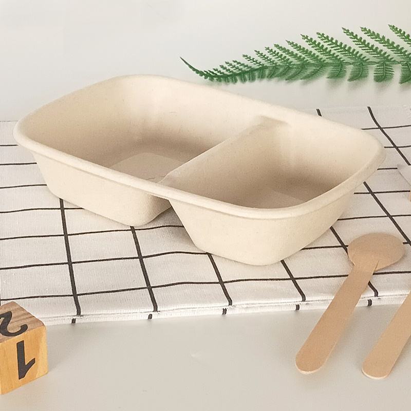 Custom Wholesale Biodegradable Sugarcane Bagasse 900ml 2-Compartment Rectangular Packaging Box With Lid