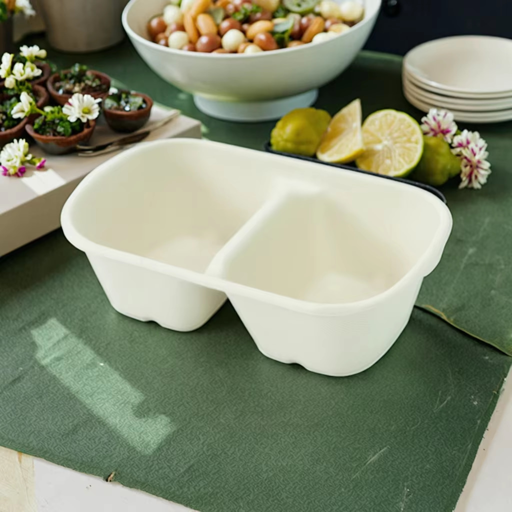Takeaway Food Containers Bagasse Tableware 700ML 2-compartment Packing Box For Restaurant